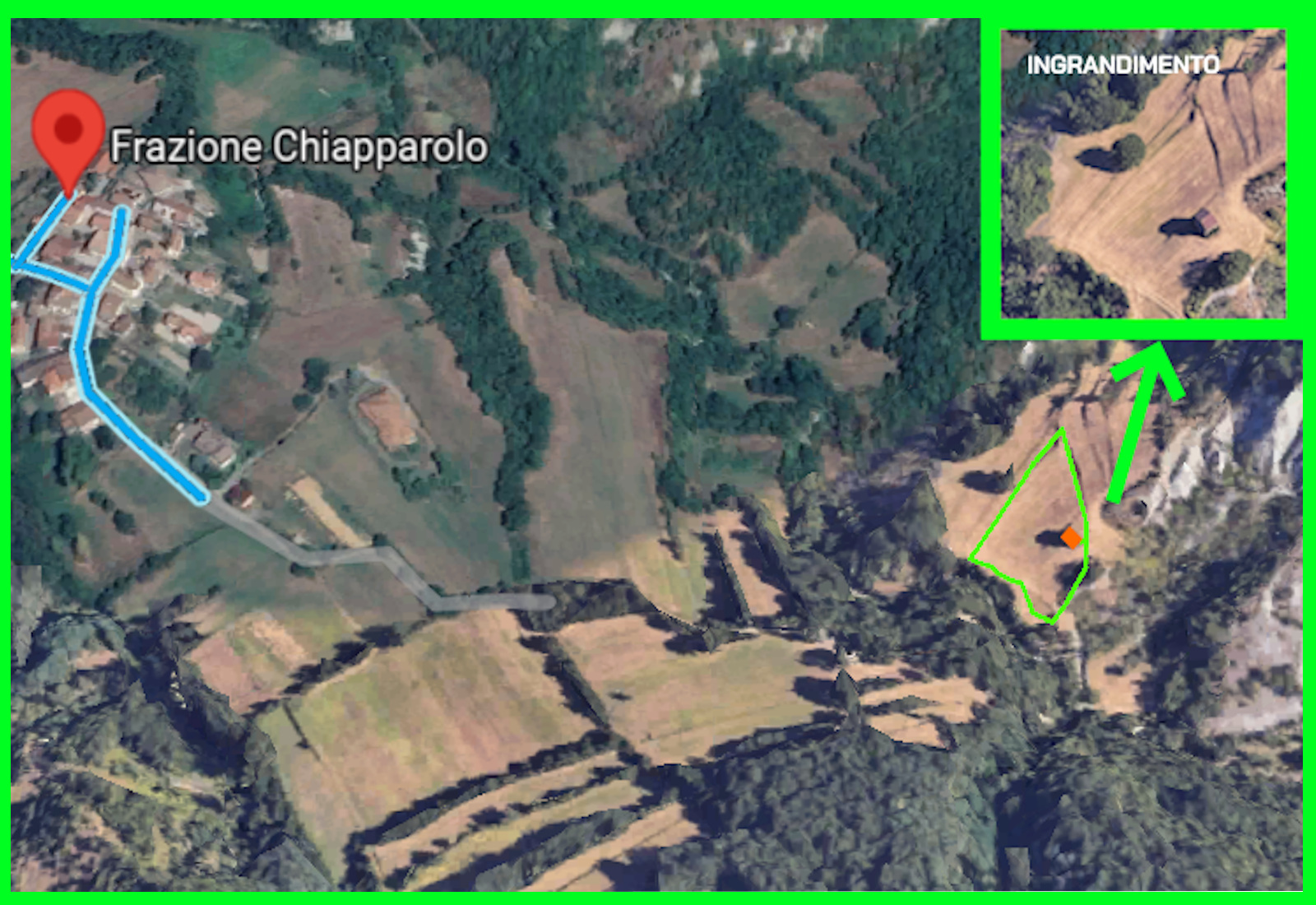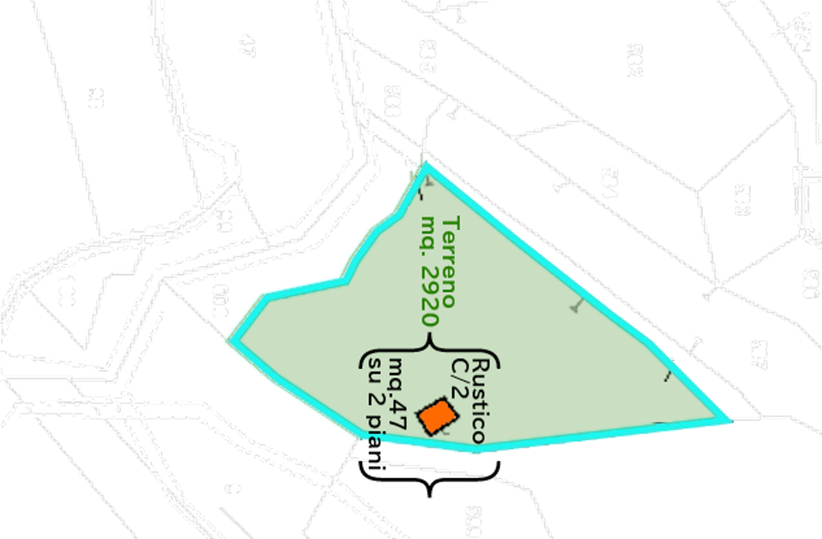 L’immobile è circondato da terreno di m². 2950 di proprietà esclusiva,in parte pianeggiante e ben esposto al sole, ideale per chi cerca tranquillità e contatto con la natura.
